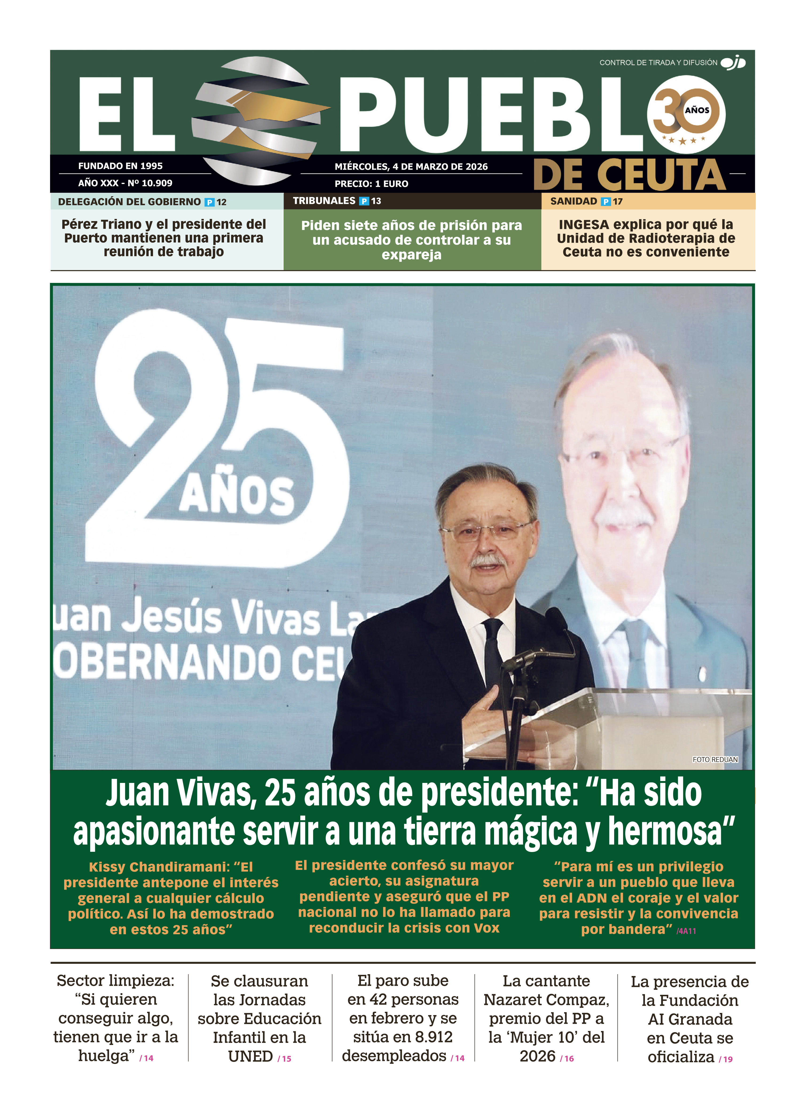 El presidente de Ceuta, en un acto por sus más de dos décadas en el Gobierno, destacó el “privilegio” que supone servir a un pueblo que “lleva en el ADN el coraje y el valor para resistir; en el corazón la convivencia; y en el alma, el amor a España”