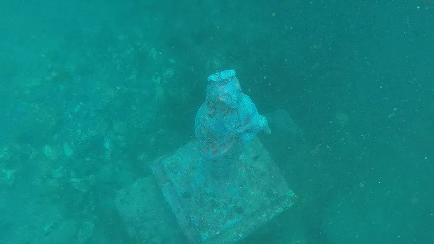 La Virgen que se encuentra sumergida bajo la piedra del Pineo se encontraba tumbada y en muy malas condiciones