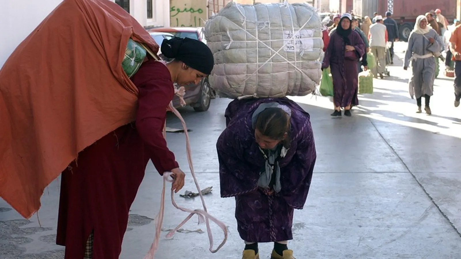 El Gobierno considera oficialmente que no puede hacer nada por las porteadoras que cruzan cargadas de bultos con mercancía la frontera de Ceuta con Marruecos.