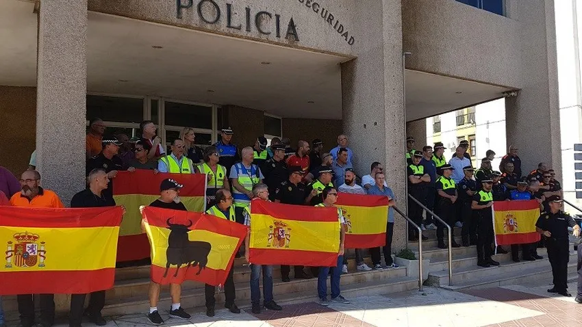 Más de un centenar de personas se han reunido este mediodía en la puerta de la Jefatura Superior de Policía Local de Ceuta para manifestar su apoyo a las Fuerzas y Cuerpos de Seguridad del Estado en Cataluña. Después de los acontecimientos que se han sucedido durante toda la semana de persecución hacia los agentes y quienes le han dado alojamiento, desde la ciudad autónoma se ha querido dar una muestra pública de apoyo a quienes en Cataluña están velando por que se cumpla la legalidad.