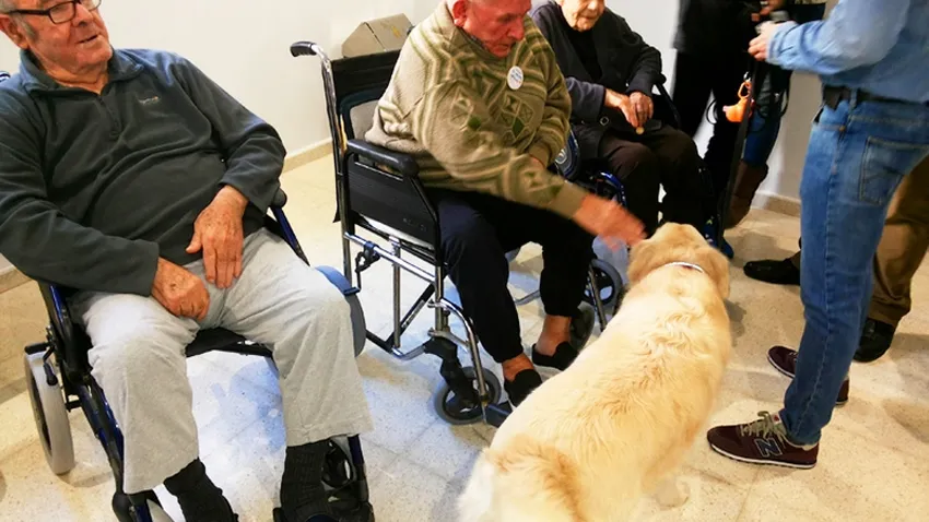 Así pues, todos los miércoles, un perro adiestrado y su terapeuta visitan las instalaciones de la residencia para trabajar durante una hora con una veintena de mayores que participan en estas prácticas pioneras en España.