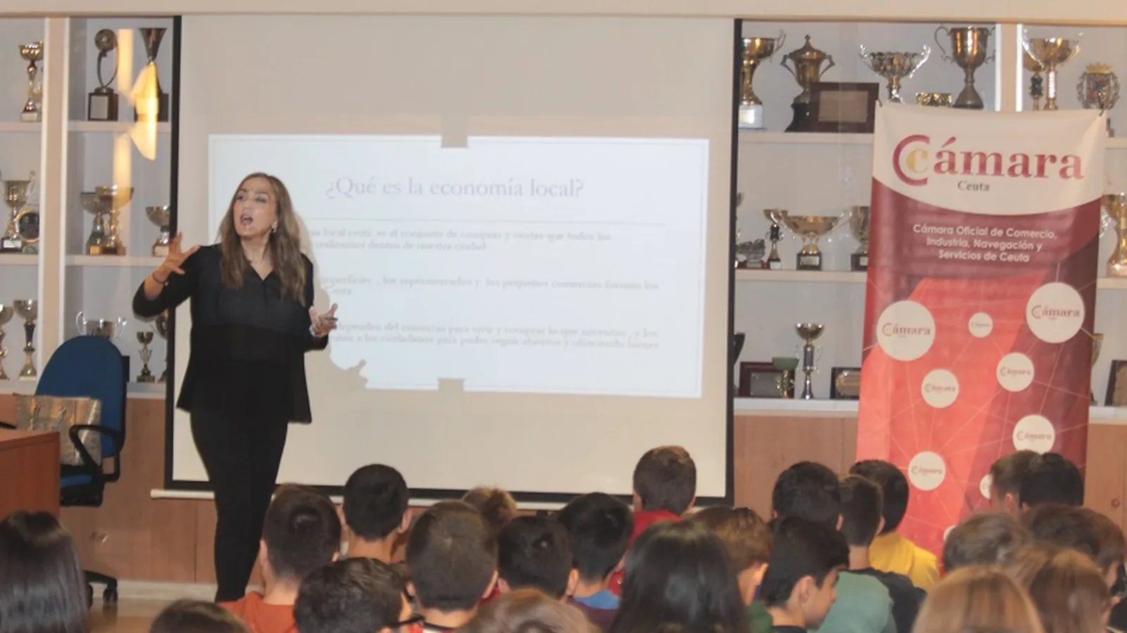 Ikram Chaib, Licenciada en Ciencias Empresariales colabora con la Cámara de Comercio impartiendo las charlas para incentivar el comercio local entre los escolares en los colegios Beatriz de Silva, Lope de Vega, San Agustín y Andrés Manjón. Es una de las iniciativas para dinamizar el comercio propuestas para esta semana con el criterio de que las actividades juveniles influyen en las inercias del comercio tanto a corto como a medio plazo.