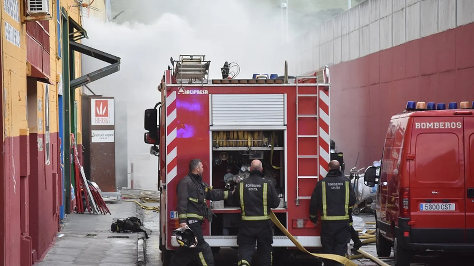 En torno a 30 efectivos del Servicio de Extinción de Incendios y Salvamento (SEIS) se movilizaban este lunes para controlar un complicado incendio en la nave 67 del Tarajal. Se trataba de un almacén de textil en el que se había declarado un incendio en la segunda planta, dedicada a almacén. El volumen de la mercancía, prensada y que cubría casi la totalidad del suelo, hizo que pronto se formara una gran humareda que dificultó el trabajo de los bomberos, así como su acceso debido a la falta de espacio incluso para caminar.