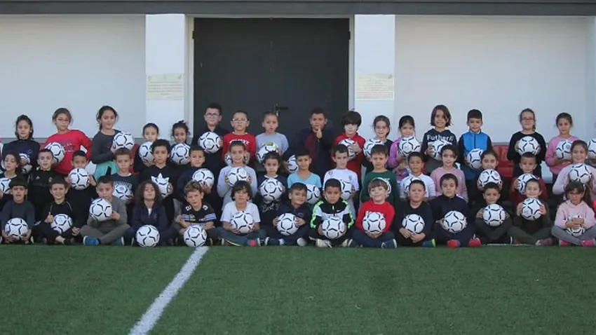 Las niñas y niños recibieron por parte de la FFCE un balón cada uno y pudieron jugar en el campo 'Emilio Cózar'