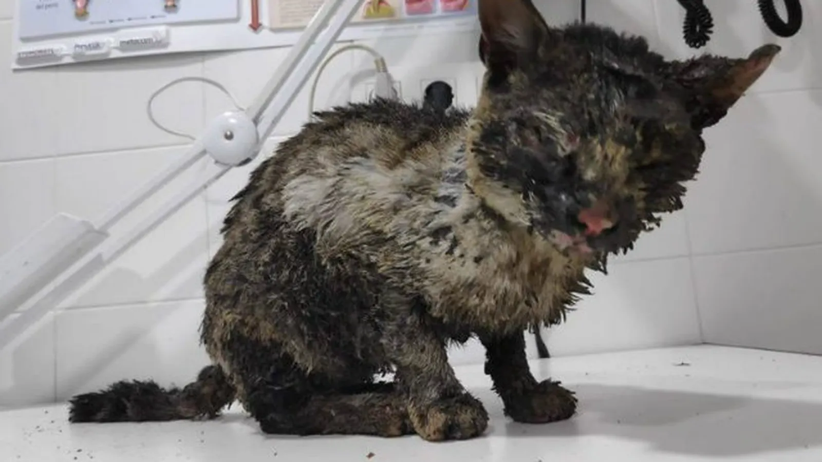 Solicitan ayuda para un gato herido en el incendio de un vehículo
