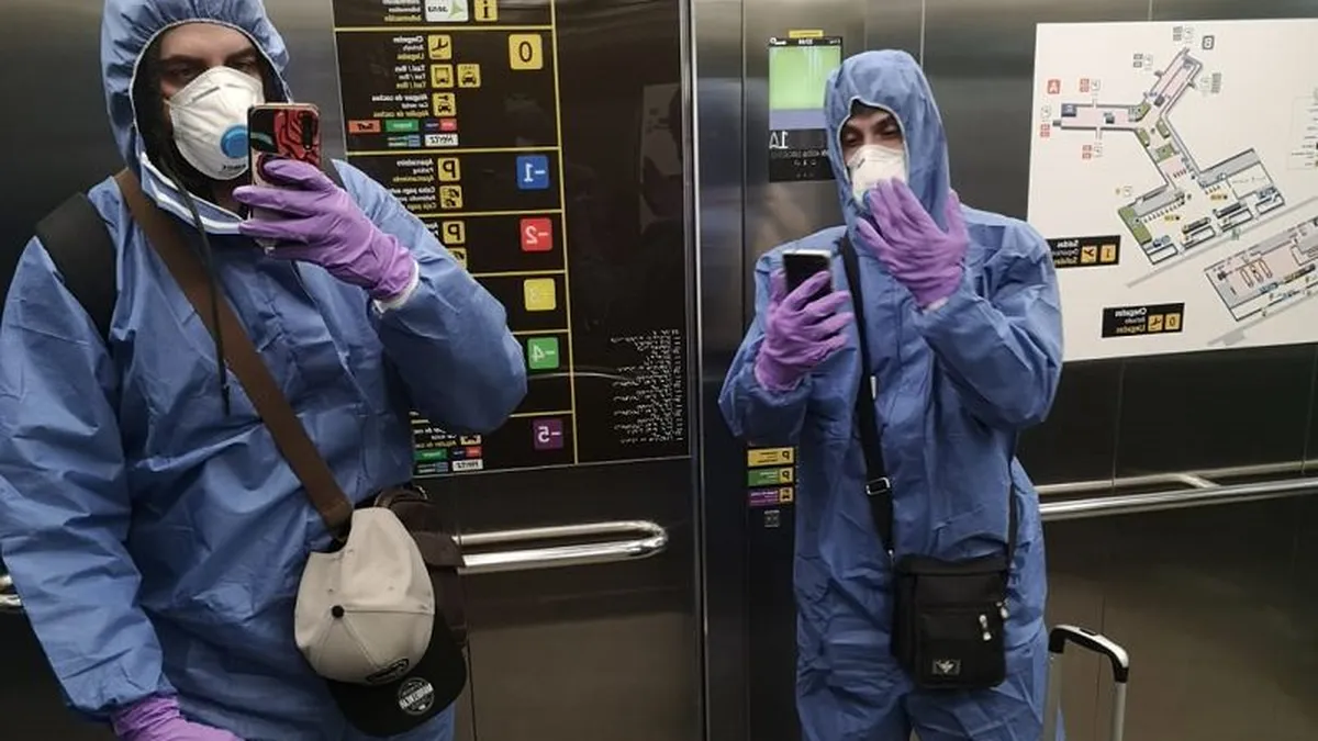 Tras la celebración los dos ceutíes se aislaron directamente en la casa de la hermana de Miguel Ángel, en un pueblo pequeño “de muy pocos habitantes” y prácticamente en el monte, Castrelo-Cambados. Tenían prevista la vuelta para este martes 17 de marzo, con un vuelo de Santiago de Compostela a Málaga, desde donde cogerían un autobús hasta Algeciras para tomar el barco a Ceuta. Ambos fueron al aeropuerto de Santiago tomando todas las medidas de protección necesarias, de hecho han querido destacar que “llevábamos todas las medidas preventivas posibles habidas y por haber, con trajes, mascarilla, guantes, alcohol y gel antibacteriano” (ver foto). Sin embargo cuando llegaron se encontraron con los vuelos cancelados, “nos dieron la información de la cancelación en el mismo aeropuerto, y la Policía Nacional nos dijo que no dejan pasar a civiles a Ceuta, que está todo cerrado”. Como alternativa la aerolínea ofreció otro vuelo al día siguiente, que fue igualmente cancelado, de manera que Ruiz pidió el reembolso “para ya cuando se normalice la situación bajaremos”.