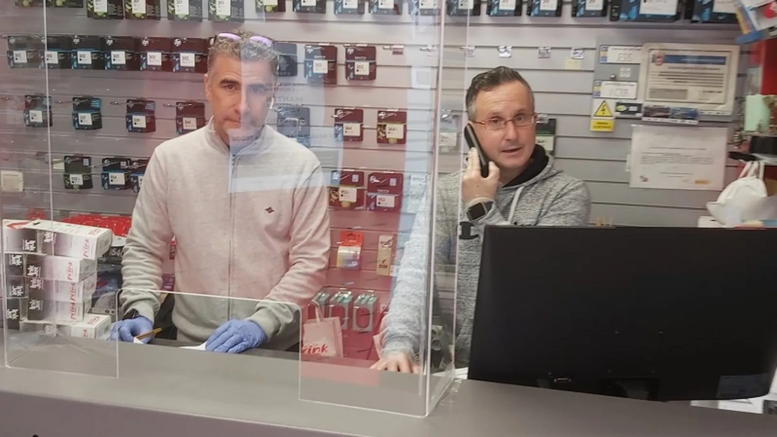 La empresa ceutí que está dirigida por Jesús Damián Romero y que cuenta como empleado a Víctor Martí se dedica a los consumibles -cartuchos de tintas, toner, etc- para impresoras e informática -repaciones, etc.- y ha visto como estos días su volumen de trabajo está más enfocado en el reparto a domicilio o centros de trabajo que en el local que tienen situados frente a la conocida ‘Curva del Plátano’. “Seguimos atendiendo a nuestros clientes y no hemos tenido prácticamente que parar nuestra actividad ningún día, lo que si está claro es que hemos tenido que cambiar nuestra forma de trabajar. Hemos bajado en la demanda de las empresas y hemos subido la de los particulares teniendo un volumen de trabajo grande como nos pasó este lunes tras la Semana Santa que tuvimos que dedicarle toda una tarde al reparto tras prepararlo por la mañana”, comenta Víctor.
