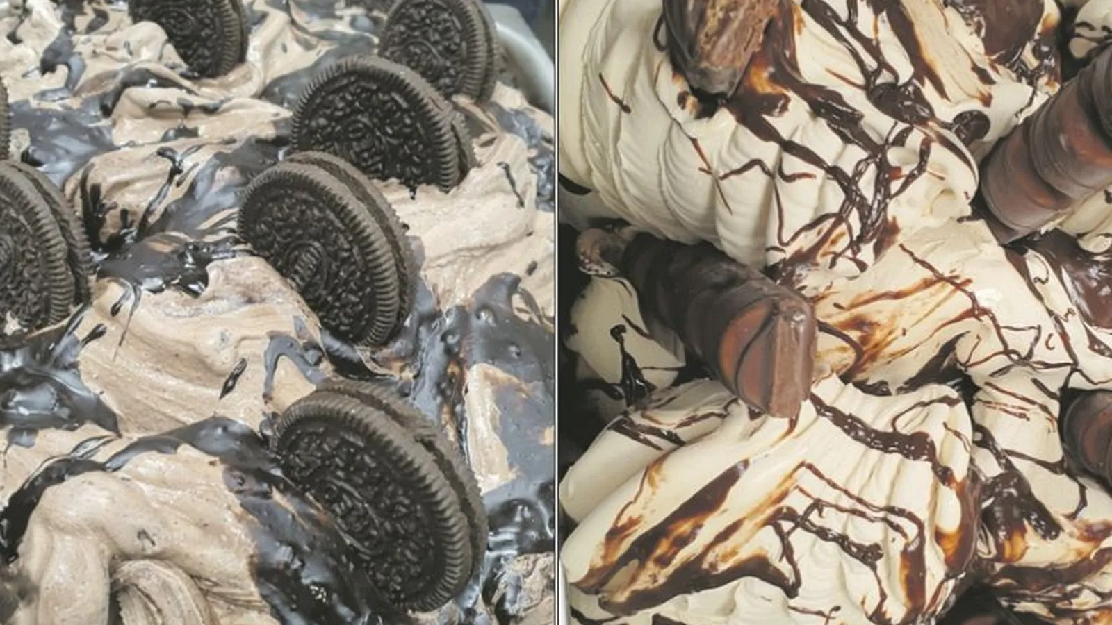 Existe una gran variedad de helados desde Kinder Bueno pasando por Nutella, Chocolate, Pistacho, Stracciatella, Fresa, Nata, Vainilla o Limón, etc. También hay helados sin gluten .-Nutella, Chocolate, Pistacho, Vainilla, Fresa, Carapino, etc.-, sin gluten y lactosa -limón, mango, kinder y extra dark- y sin azúcar -turrón y leche merengada-. Es decir para todos los gustos y necesidades.