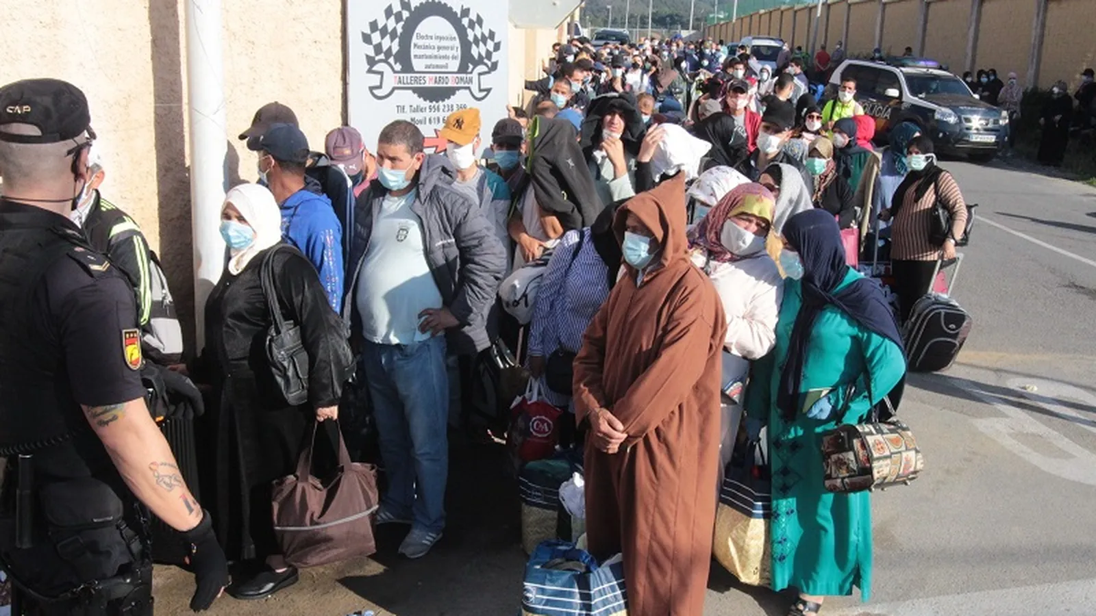 Una vez que la inmensa mayoría comprobaba que había quedado fuera de la lista de esta primera repatriación, se producía el éxodo desde las instalaciones de este colegio hasta las inmediaciones de la frontera. Alrededor de un centenar se desplazaba a pie hasta la penúltima rotonda de la frontera, donde la Guardia Civil y la Policía Nacional les daban el alto para que no consiguieran llegar hasta la frontera. Otros se acercaban hasta la frontera en coche para intentar probar suerte. Este era el caso de una mujer, residente en Ceuta, que llevaba a su hermana y a su sobrina, ambas marroquíes, para que intentaran cruzarla. Pero la Policía les denegaba el acceso: “Lo siento, pero no aparecen en la lista”, generando la indignación de esta marroquí, “la culpa de todo esto la tiene Marruecos”. Esta trabajadora transfronteriza afirma que el mismo día que Marruecos decidió cerrar la frontera sin previo aviso se encontraba limpiando una casa junto a su hija, a la que había traído hasta Ceuta para que le echara una mano, “ya que era una casa grande”. Ambas se quedaban atrapadas en la ciudad y sin trabajo, por lo que tuvieron que ser acogidas por su hermana.