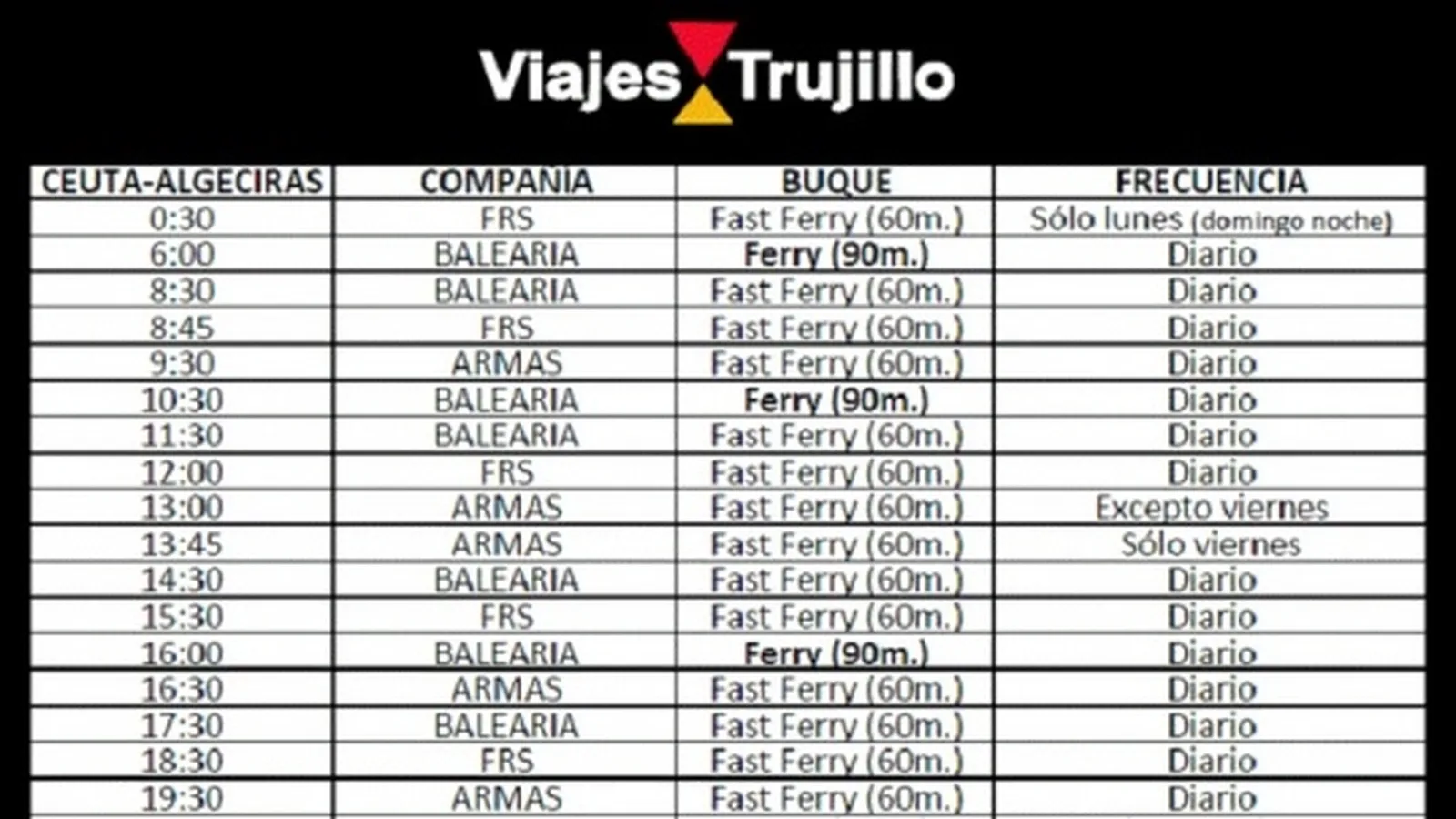 El Pueblo de Ceuta ha puesto a disposición de sus lectores los horarios de las navieras que operan en la ruta marítima entre Ceuta y Algeciras.