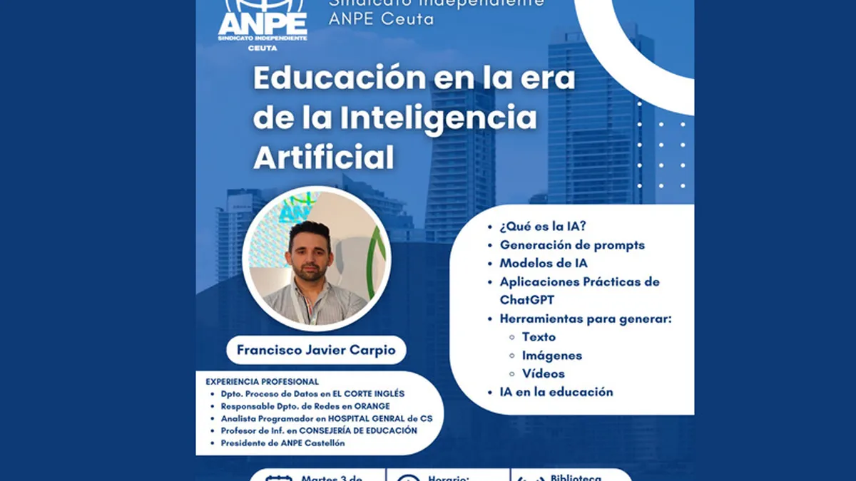 Los retos que la inteligencia artificial plantea a la educación y los profesionales docentes serán el leit motiv de la conferencia que el sindicato de enseñanza Anpe ha organizado para el próximo martes 3 en la biblioteca “Adolfo Suárez”. La convocatoria tendrá por protagonista al presidente del sindicato en Castellón, Francisco Javier Carpio, un profesional con amplia experiencia en el mundo de la docencia tanto en el ámbito privado como en el público.