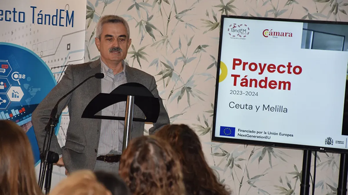 El presidente de la Cámara de Comercio, Karim Bulaix, la delegada del Gobierno, Cristina Pérez, y el director provincial del Servicio Público de Empleo Estatal (SEPE), Francisco José Gil, han ejercido este miércoles de anfitriones en el acto de graduación del Programa TándEM, una iniciativa de integración laboral contemplada en el Plan de Recuperación, Transformación y Resiliencia. El proyecto, dirigido a jóvenes de entre 16 y 29 años en situación de desempleo, desarrolla tres acciones formativas que reúnen en Ceuta a 45 participantes.