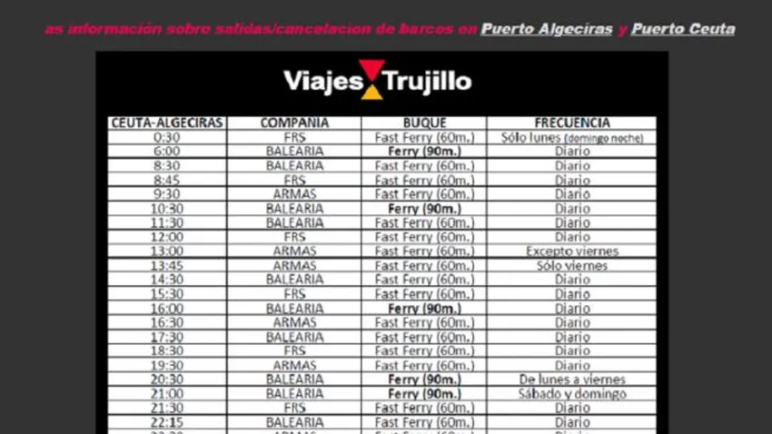 El Pueblo de Ceuta ha puesto a disposición de sus lectores los horarios de las navieras que operan en la ruta marítima entre Ceuta y Algeciras.