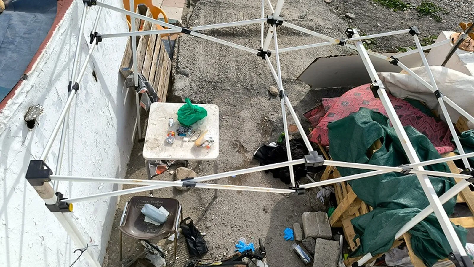 Vivía bajo el esqueleto de lo que fue un toldo. Quedaban restos de pastillas en el suelo, una lata de cerveza vacía, un mechero, una silla y una mesa de plástico, palés apilados formando una especie de habitación, mantas, un colchón y un trozo de cartón con la función de resguardar del frío al inquilino de este lugar desangelado al lado de la Iglesia de Nuestra Señora del Carmen. El templo fue declarado en ruinas hace casi cuatro años; la vida de Abdeselam, más conocido por los lugareños como ‘Slif’, hace décadas. Las adicciones atraparon a este vecino del Príncipe de 55 primaveras desde pequeño. Nunca escapó de ellas. Este jueves, solo y a la intemperie, hallaron su cuerpo sin vida en su infravivienda. No han trascendido detalles oficiales sobre el deceso, aunque todo indica a que fue una muerte natural debido a su malos hábitos y al consumo habitual y excesivo de estupefacientes.