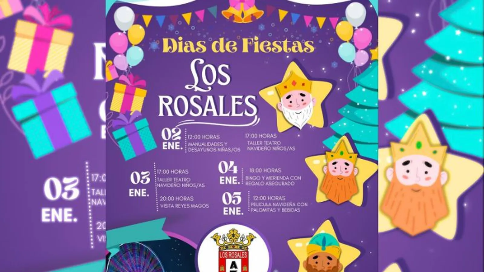 La Asociación de Vecinos de los Rosales ha preparado una serie de actividades dirigidas a los más pequeños de la casa para celebrar la entrada de año y la recta final de las festividades navideñas. Los eventos comienzan este jueves 2 de enero, se prolongarán hasta este domingo 5 y en ellos se incluyen talleres de manualidades y teatro, una visita de los Reyes Magos, un bingo o una sesión navideña de cine.