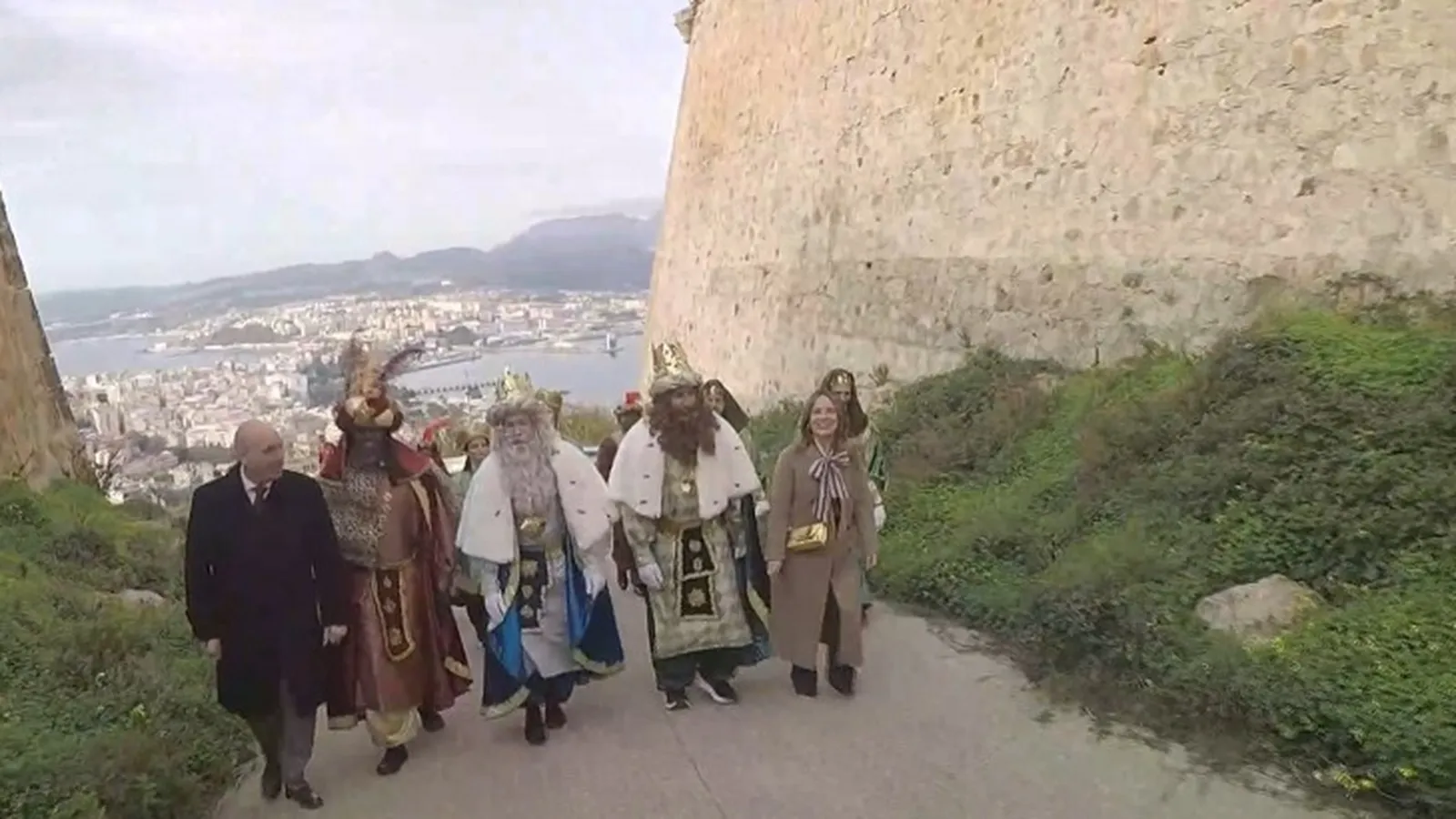 Antes del cañonazo, Sus Majestades de Oriente y las autoridades políticas pasearon por el exterior de la fortaleza para admirar las vistas de una Ceuta que lucía con cielos despejados y un cálido sol para estas primeras fechas del año.