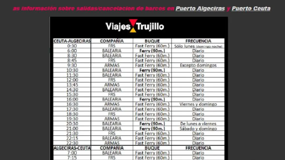El Pueblo de Ceuta ha puesto a disposición de sus lectores los horarios de las navieras que operan en la ruta marítima entre Ceuta y Algeciras.