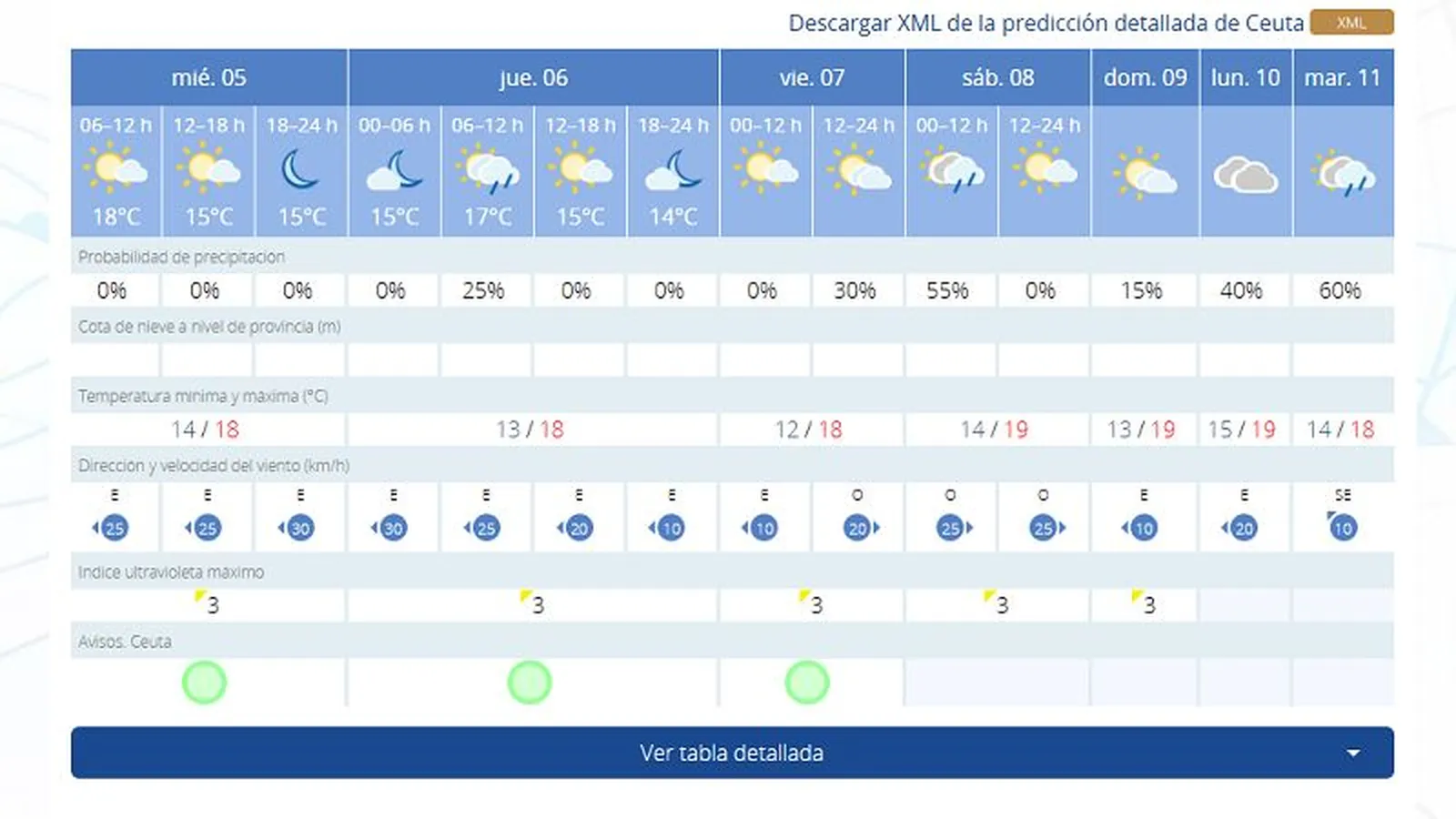 Ya de cara al jueves, 6 de febrero, las previsiones muestran máximas de 18 grados con mínimas de 13. Además se espera una jornada soleada, aunque cabe la posibilidad de intervalos nubosos.