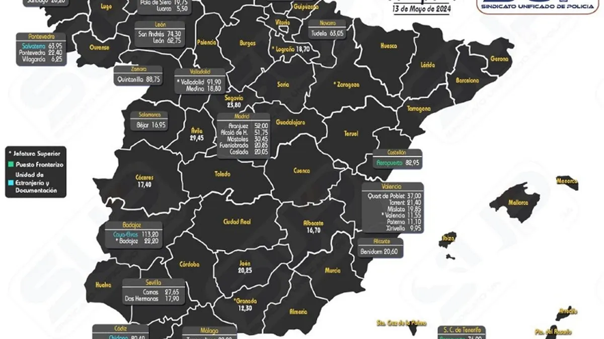 El sindicato SUP ha compartido los mapas de puntuaciones debido a que está cercana la publicación del borrador del Cuadro General de Méritos (CGM) para las plazas de Subinspector y Básica de la Policía Nacional, correspondiente a 2024. En este sentido, el sindicato SUP apunta que "las plantillas en las que quedaron plazas desiertas no aparecen".