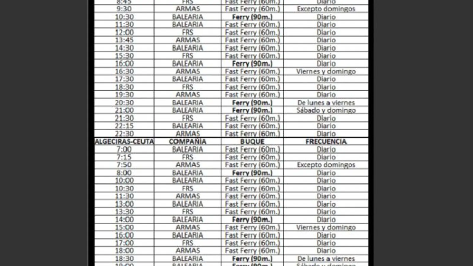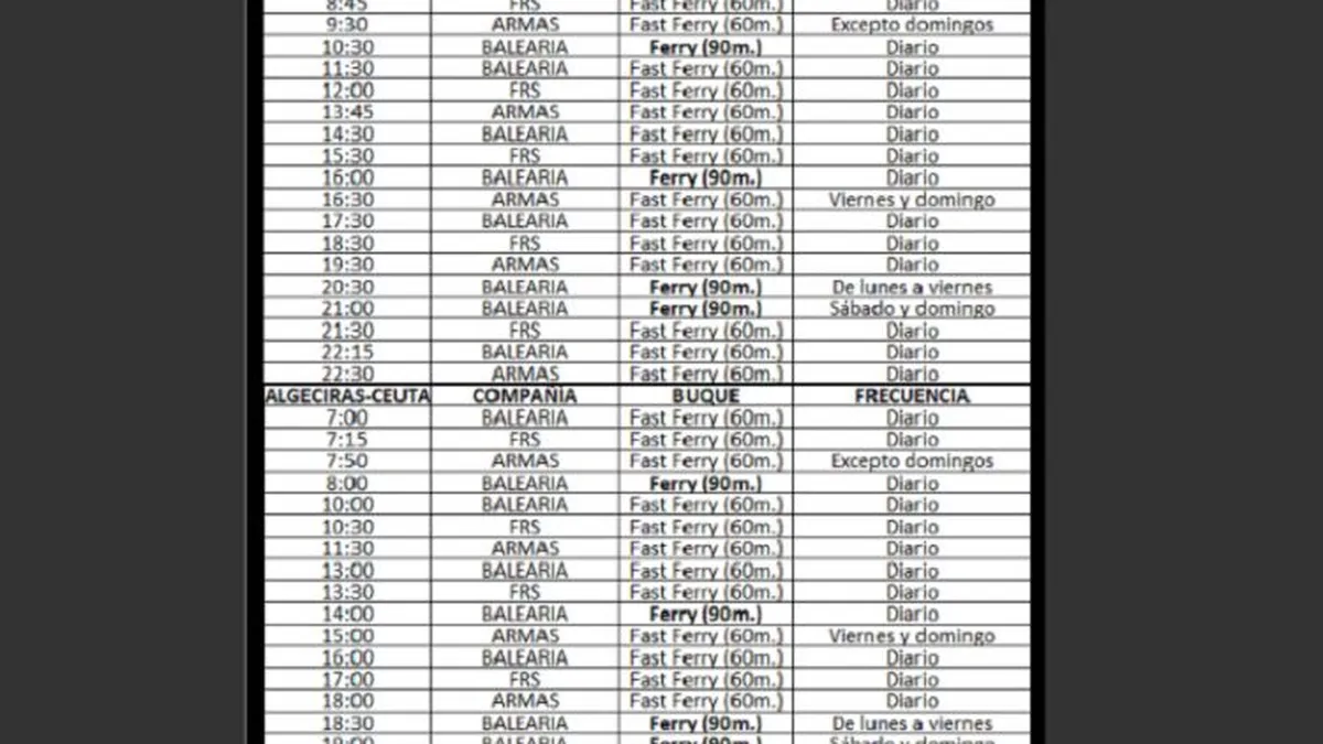 El Pueblo de Ceuta ha puesto a disposición de sus lectores los horarios de las navieras que operan en la ruta marítima entre Ceuta y Algeciras.