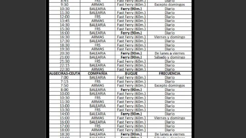 El Pueblo de Ceuta ha puesto a disposición de sus lectores los horarios de las navieras que operan en la ruta marítima entre Ceuta y Algeciras.
