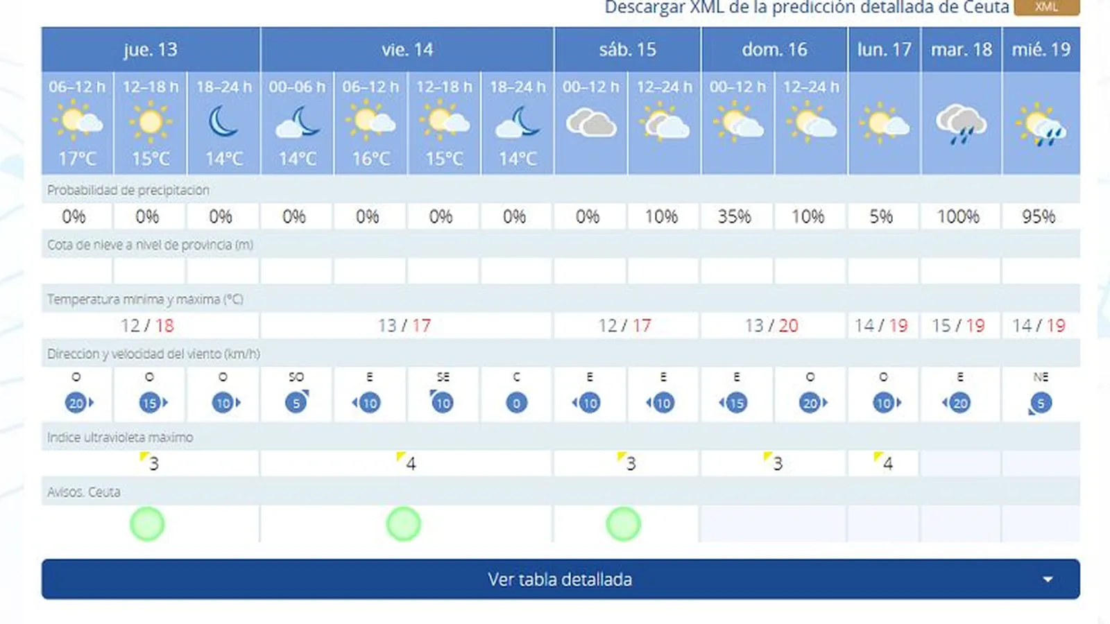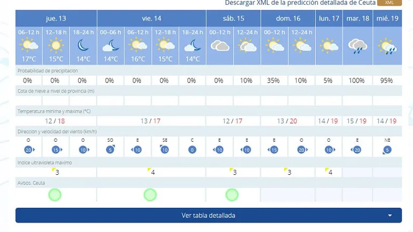 Los termómetros rozarán los 20 grados este jueves en Ceuta: Cielos soleados para todo el día