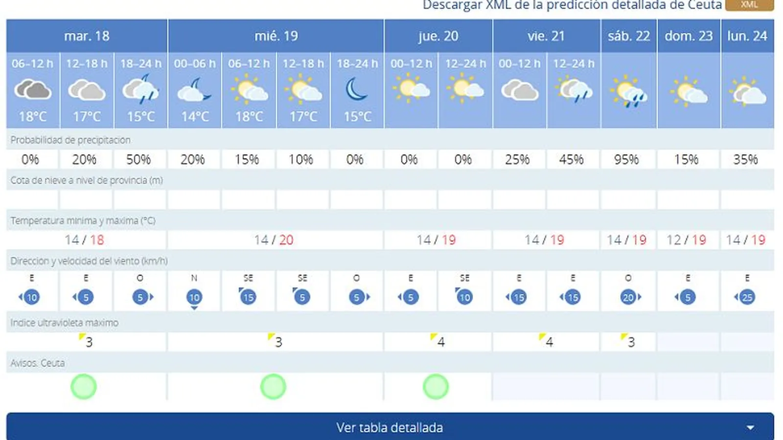 Ya de cara al miércoles, 19 de febrero, las previsiones muestran máximas de 20 grados con mínimas de 14. Sin embargo, para el miércoles se prevé una jornada soleada con intervalos nubosos.
