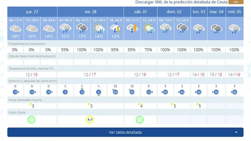Nubosidad para este jueves en Ceuta: Previsión de lluvias y tormentas de viernes a miércoles