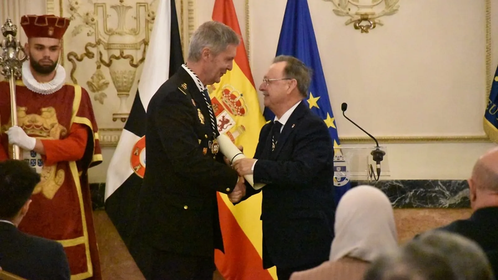 Al Palacio Autonómico acudieron todas las autoridades civiles y militares de la ciudad, asistiendo además el secretario de Estado de Seguridad del Ministerio del Interior, Rafael Pérez.