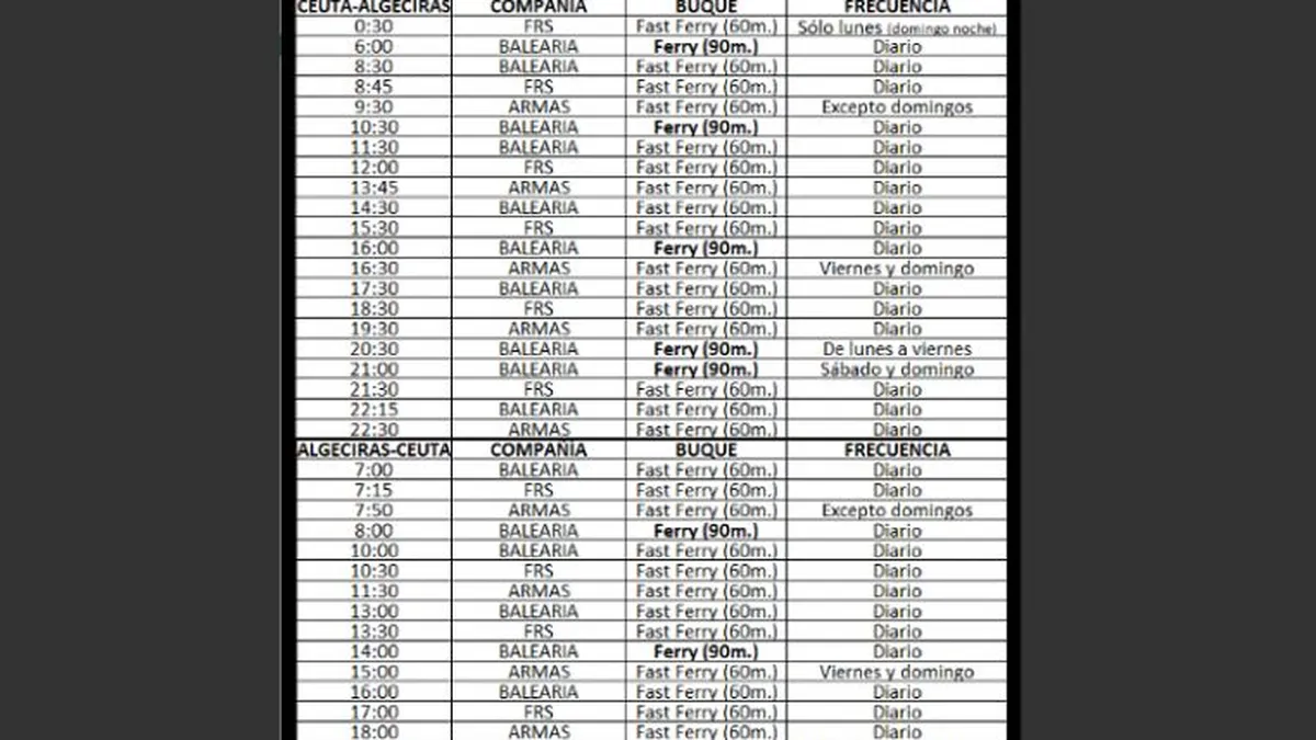 El Pueblo de Ceuta ha puesto a disposición de sus lectores los horarios de las navieras que operan en la ruta marítima entre Ceuta y Algeciras.