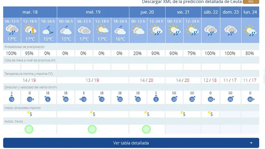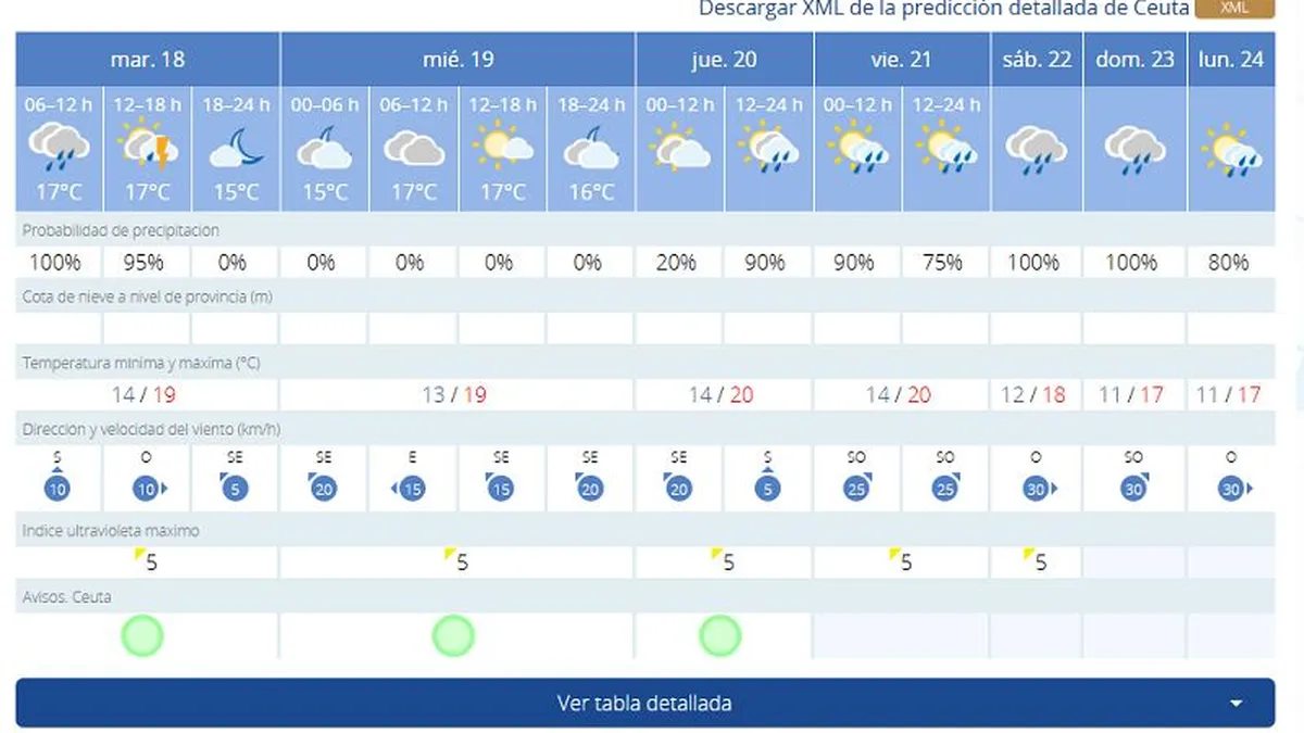 La Perla del Mediterráneo abre una nueva jornada con este martes, 18 de marzo. Al respecto, las previsiones de la AEMET avanzan lluvias y posibilidades de tormentas, con probabilidad del 100%.