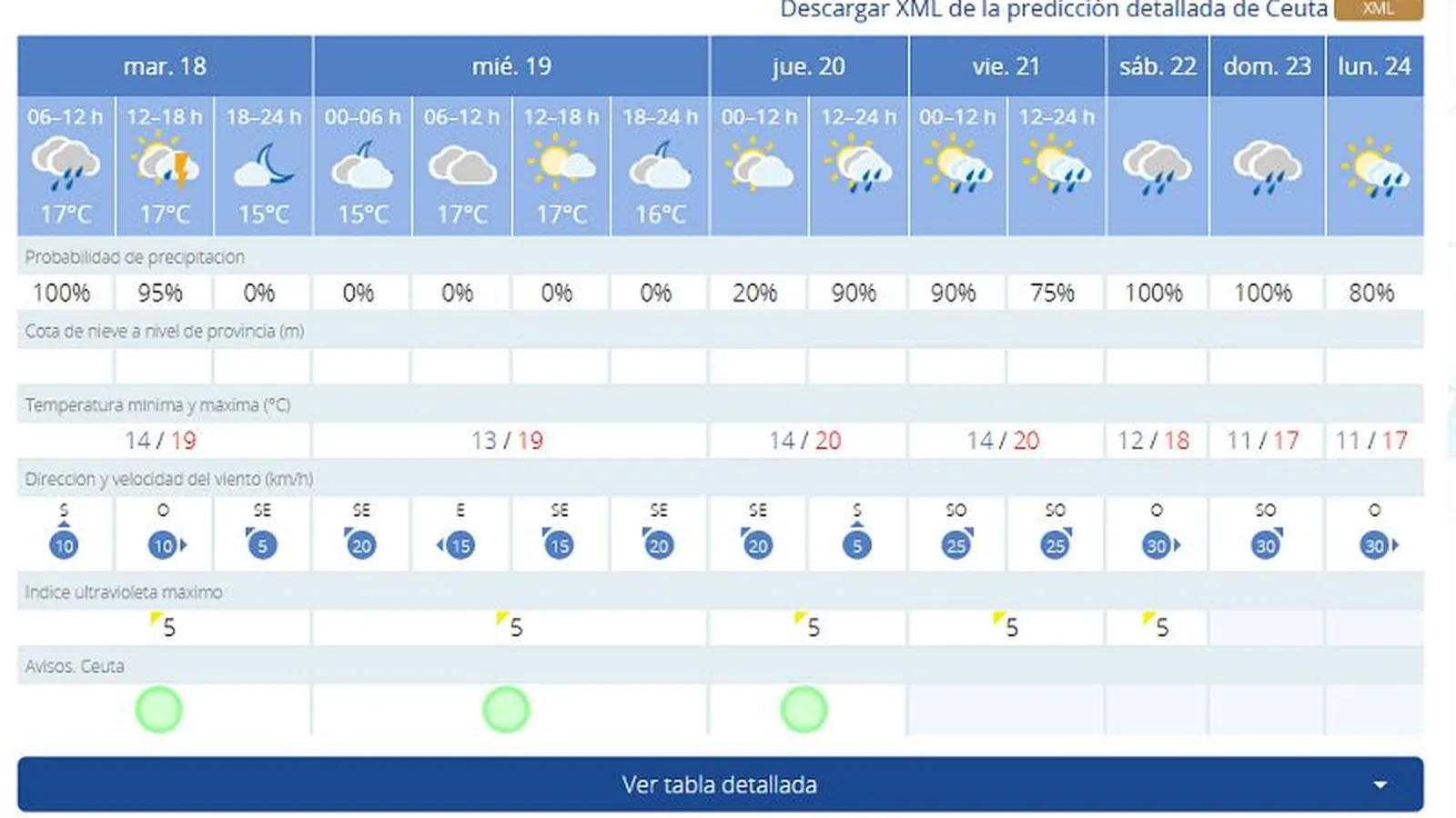 Ya de cara al miércoles, 19 de marzo, las previsiones muestran máximas de 19 grados con mínimas de 14. Además, AEMET prevé una mejora del tiempo, sin previsión de lluvias