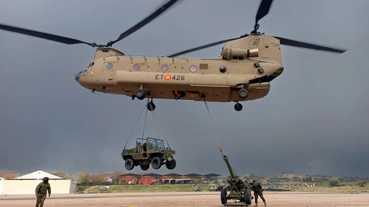 El helicóptero Chinook en acción: Así apoya el Ejército de Tierra en misiones logísticas de alto nivel