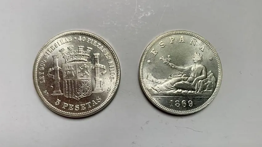 Una moneda de 5 pesetas acuñada en 1869 puede llegar a valer hasta 40.000 euros. Conoce su historia, características y por qué es tan buscada por los coleccionistas de numismática