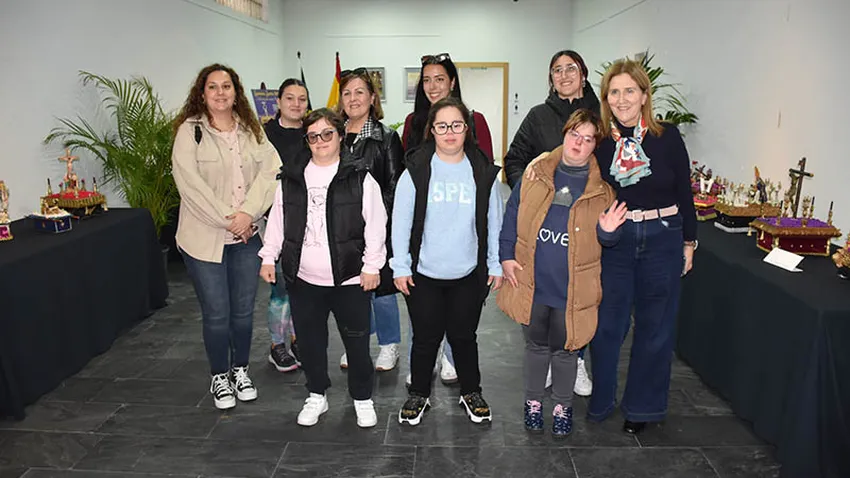 Un grupo de usuarios de la Asociación Síndrome de Down han visitado este jueves la exposición de pasos en miniatura que permanece abierta en el Centro del Mayor y de la cual es autor el artista Luis Gabarrón. La muestra ofrece reproducciones de una gran fidelidad de 28 pasos y palios de la Semana Santa de Ceuta y de otras localidades.