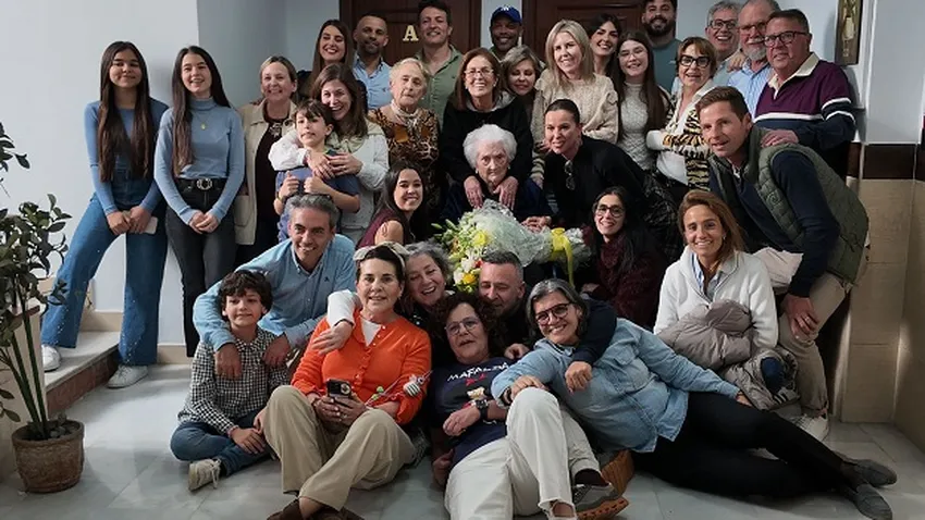 Tantos son los seres queridos que la acompañaron en su nuevo cumpleaños que tuvieron que hacer la foto de familia a las puertas del piso donde se celebraba la fiesta. Y eso que no pudo acudir la totalidad de hijos, nietos y bisnietos de quienes Juana García de Vinuesa (100 años) tiene la suerte de presumir. La ceutí nacida en Tetuán, “una gran amazona”, “buena persona” y mujer de “fortaleza”, protagonizó este lunes, 14 de abril, una fiesta en honor de su centenario.