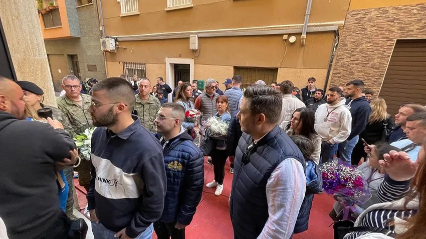 Una representación del Regimiento de Caballería ‘Montesa’ número 3 del Ejército de Tierra abriría la tradicional ofrenda a los titulares de la Hermandad, que sería completada por multitud de ramos de flores -en su mayoría blancoss y rojos- entregados por devotos y devotas. Miembros de la Cofradía subían uno a uno los ramos al suelo de los pasos ayudados por una escalera móvil, mientras que el resto de fieles se turnaban en el interior del Oratorio para hacerse las fotografías de rigor e inmortalizar el momento acompañados de sus familiares.