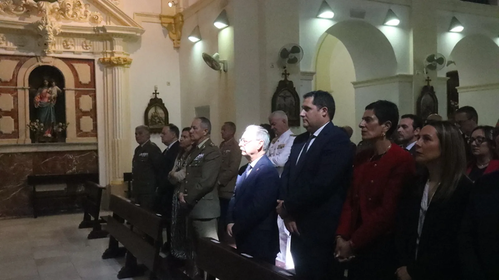 El acto comenzaba con un oficio religioso a las 11.00 en la Iglesia de San Francisco, que contaba con la presencia del presidente de la Ciudad, Juan Vivas (acompañado de varios de sus consejeros), los asesores de Delegación del Gobierno Abselam Abdellah, Marta Fernández y Raquel Miaja, los diputados de VOX Juan Sergio Redondo y Ana Belén Cifuentes, y el socialista Sebastián Guerrero. Por la parte castrense, acudió el comandante general, Luis Fernández Herrero; el delegado de Defensa, Federico Navarro y varios representantes de la guarnición ceutí.