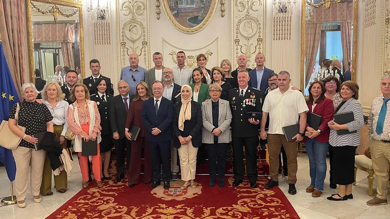 El presidente de la Ciudad fue el encargado de presidir este acto que se realiza cada año, acompañado por miembros de su Gobierno como Alberto Gaitán o Nicola Cecchi, ademas de la vicepresidenta y diputada del MDyC, Fatima Hamed y representantes de la Administración Local y sindicatos. Además, los funcionarios fueron arropados por sus familiares en este día importante para ellos, quienes abarrotaron el Salón del Trono. Algunos se mostraban emocionados y orgullosos por un reconocimiento que avala la carrera profesional de estos funcionarios.