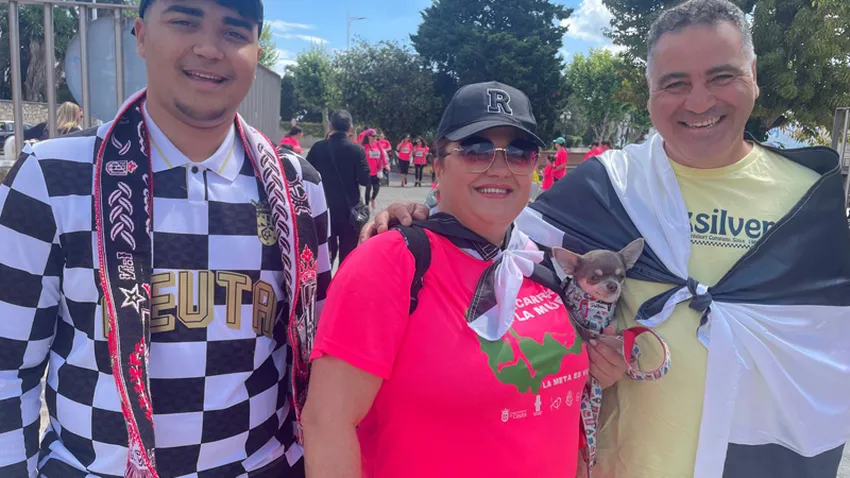 La plaza de armas de las Murallas Reales se vistió este domingo con una manta rosa. El color de las más de 3.200 camisetas vendidas para la Carrera de la Mujer, el evento deportivo no competitivo que recauda fondos para la investigación contra el cáncer y que este 2025 ha celebrado su vigésima edición. También los hombres concurrieron a la convocatoria, pero la presencia femenina volvió a marcar esta ya tradicional jornada organizada por la Asociación Española Contra el Cáncer (AECC), la Asociación Ceutí de Mujeres Mastectomizadas (ACMUMA) y el Centro Asesor de la Mujer, dependiente de la Consejería de Sanidad y Servicios Sociales, cuya cabecilla, Nabila Benzina, estuvo a cargo de romper la cinta que dio paso al inicio de la marcha multitudinaria.