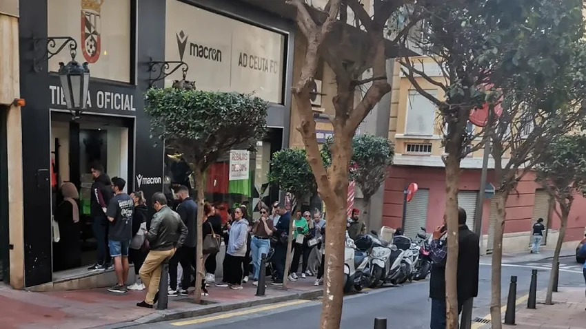 La sede de la AD Ceuta, en Agustina de Aragón, ha recibido la masiva llegada de aficionados para retirar las entradas que el club ha puesto a disposición para el partido del sábado entre el equipo ceutí y el Yeclano.