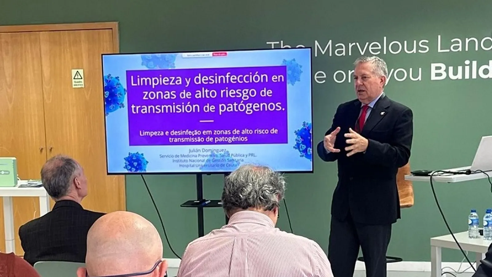 Posteriormente, el especialista ceutí ha presentado la ponencia “Peróxido de hidrógeno para la desinfección del aire: una solución eficaz y segura”, en la que ha compartido la experiencia del HUCE en la aplicación de esta tecnología en áreas sensibles del centro sanitario, como quirófanos y zonas de aislamiento.