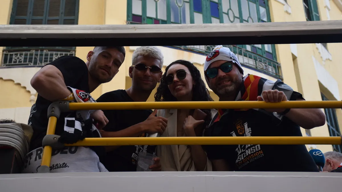 Los miembros del club han disfrutado del trayecto en autobús descapotable bailando al son de la música. También han recibido el aliento de los ceutíes que estaban en las ventanas y balcones por los que han pasado la rúa del equpo ceutí.