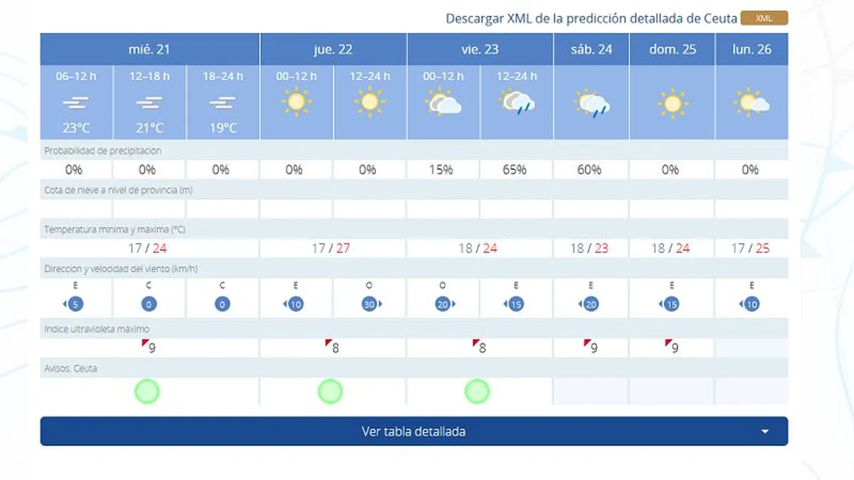 La Perla del Mediterráneo abre una nueva jornada con este miécoles, 21 de mayo. Al respecto, las previsiones de la AEMET avanzan nielbas para toda la jornada.
