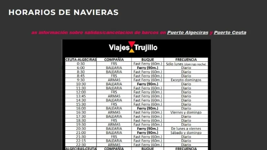 El Pueblo de Ceuta ha puesto a disposición de sus lectores los horarios de las navieras que operan en la ruta marítima entre Ceuta y Algeciras.