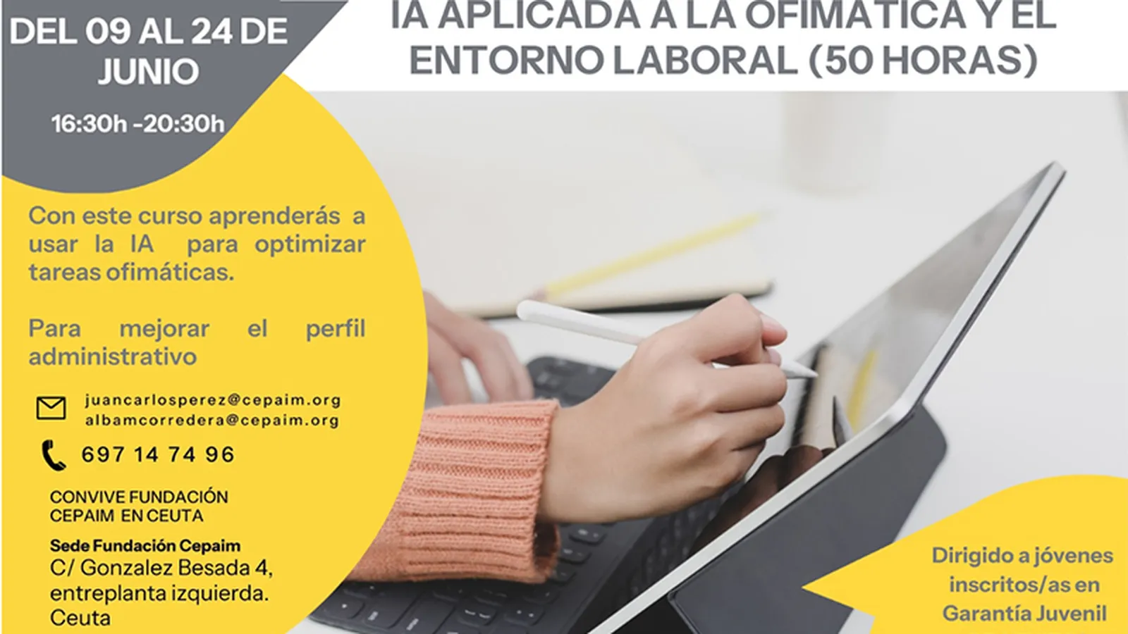 “IA aplicada a la ofimática y el entorno laboral” y “Asistencia a la clientela telemática virtual y gestión de llamadas” son los títulos de los cursos de formación que la Fundación Cepaim impartirá en Ceuta. Estas iniciativas formativas, dirigidas a jóvenes de entre 16 y 29 años, se ofrecen a través del programa “La Ruta”, en el marco del Programa de Empleo Juvenil , y están cofinanciadas por el Fondo Social Europeo Plus y de la Fundación "la Caixa".