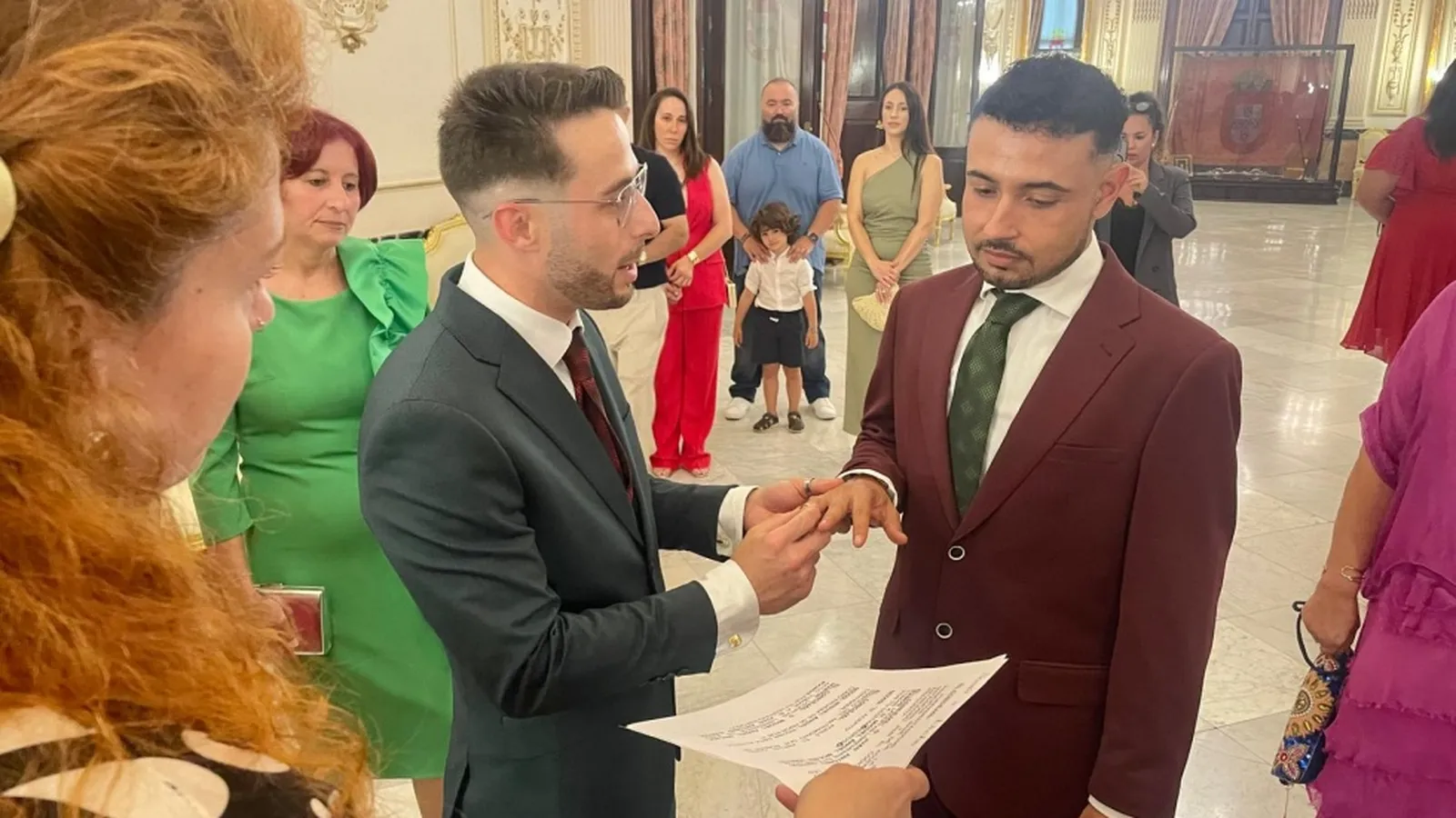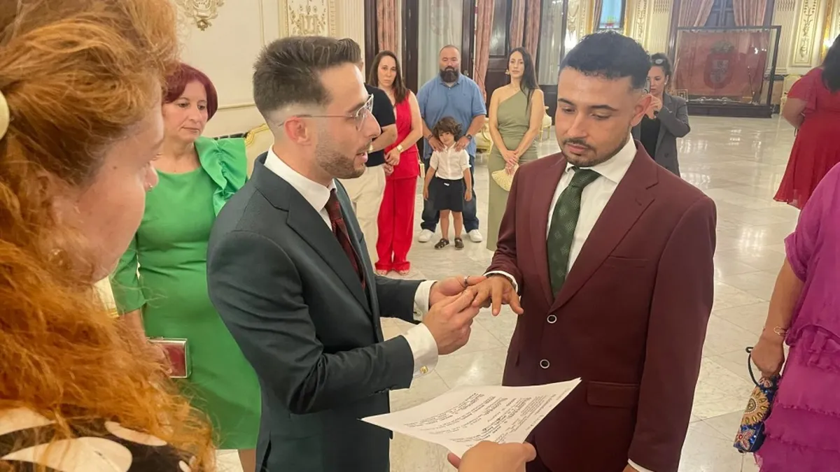 El Salón del Trono del Palacio Autonómico de Ceuta se vistió con sus mejores galas en el primer sábado de este mes de junio para acoger la Boda de Juan Antonio y Miguel. Una ceremonia en la que estuvieron acompañados por familiares y amigos y que fue oficiada por la diputada de la Asamblea por Ceuta Ya! Julia Alejandra Ferreras.
