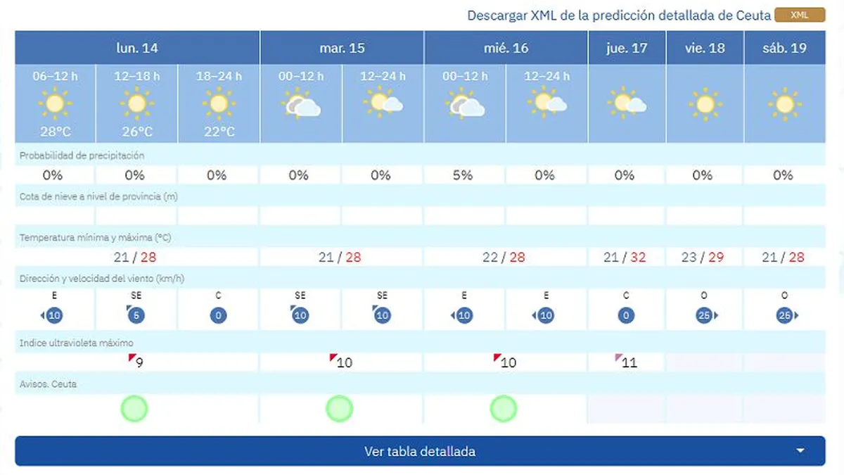 Ya de cara al martes, 15 de julio, las previsiones muestran máximas de 28 grados con mínimas de 21. Además, AEMET prevé cielos parcialmente despejados.