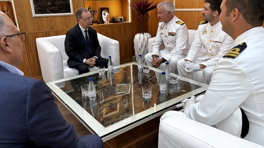 El presidente de la Ciudad, Juan Vivas, ha recibido en su despacho esta mañana a los comandantes entrante y saliente del Patrullero de la Armada Isla de León, con motivo del relevo en el mando. A esta cita han acudido el teniente de Navío y comandante entrante, Francisco Javier Morales García, el teniente de Navío y mando saliente, Jaime Garat, y el comandante naval de Ceuta, el capitán de Navío, Millán Neira. Además, el presidente ha estado acompañado en este encuentro por el consejero de Presidencia y Gobernación, Alberto Gaitán.
