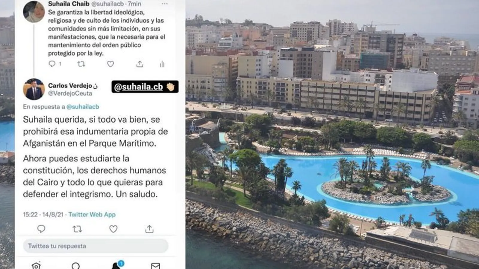 El ‘día del burkini’ surgió en reivindicación a los últimos tweets del portavoz de VOX Ceuta, Carlos Verdejo sobre la ropa en específico que usan las mujeres de confesión musulmana para atender las zonas de baño público en Ceuta, que califica en sus redes el portavoz de “marroquinización y además antihigiénica”, entre otros comentarios como “bañarte como un español, no como alguien de Afganistán”, a lo que una internauta (@suhailacb) le respondió a golpe de tweet con “se garantiza la libertad ideológica, religiosa y de culto de los individuos y las comunidades sin más limitación, en sus manifestaciones, que la necesaria para el mantenimiento del orden público por la ley”, a lo que Carlos Verdejo respondió tajante “Suhaila querida, si todo va bien, se prohibirá esa indumentaria propia de Afganistán en el Parque Marítimo. Ahora puedes estudiarte la constitución, los derechos humanos del Cairo y todo lo que quieras para defender el integrismo. Un saludo”. Ante la respuesta de Verdejo a la internauta se movilizan este martes alrededor de cien ceutíes enfundadas en su burkini para asistir al Parque Marítimo y reclamar su libertad, a pesar de que Laila Abdeselam Mohamed admite que “no quiero darle protagonismo al señor Verdejo, porque no me gusta entrar en política, pero todo surgió a raíz de su tweet, ya que este señor no solo se dedica a denigrar a los políticos, sino también a la población, lo cual nos indigna muchísimo porque tiene un afán hacía los musulmanes increíble”.